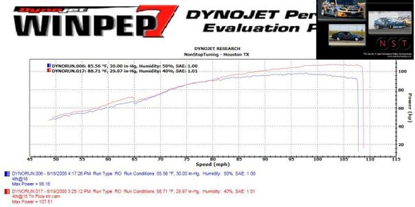 Compare WHP at 7000 RPM, 105 MPH. Tri Flow Cams add almost 15 WHP here…