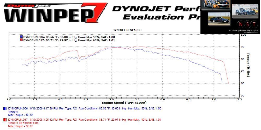 Compare WTQ at 7000 RPM. Tri Flow Cams add almost 11 WTQ here…