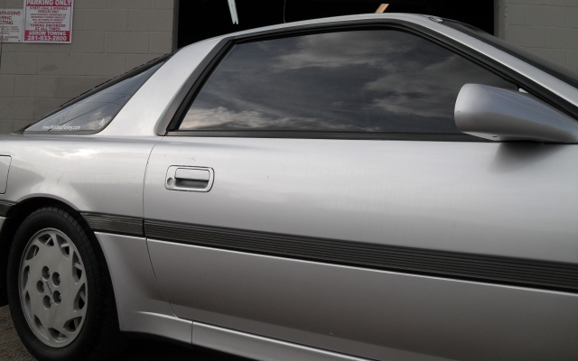 We pulled the 20 year old tint off this Toyota Supra and added a new coat of 20% black tint all the way around…