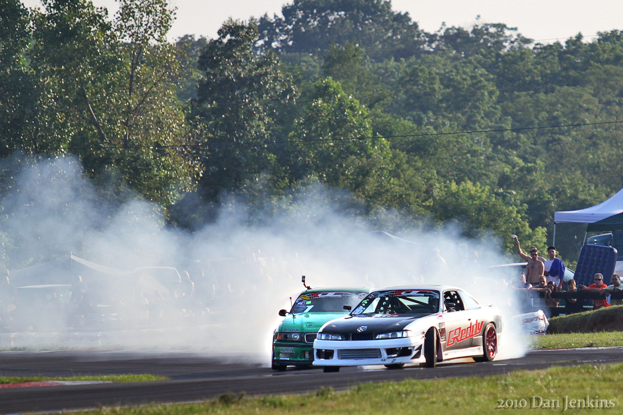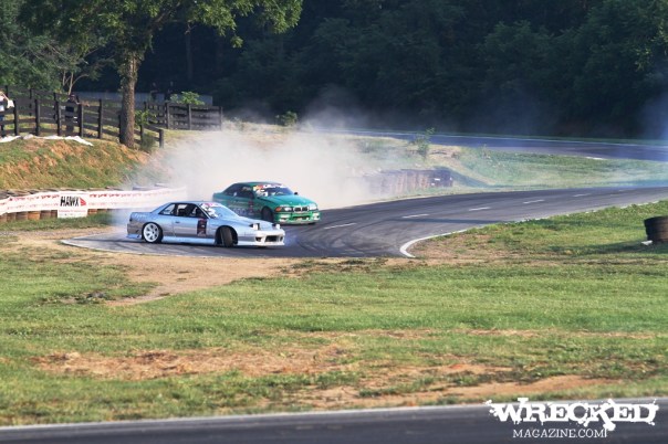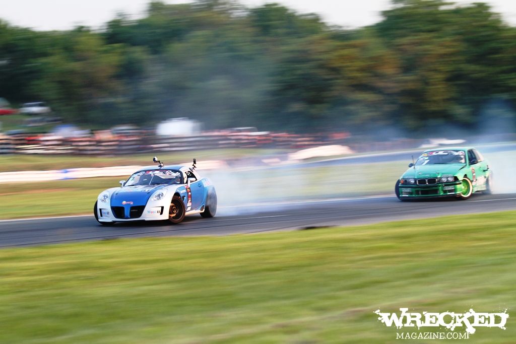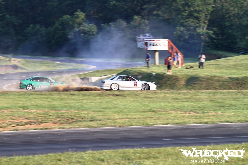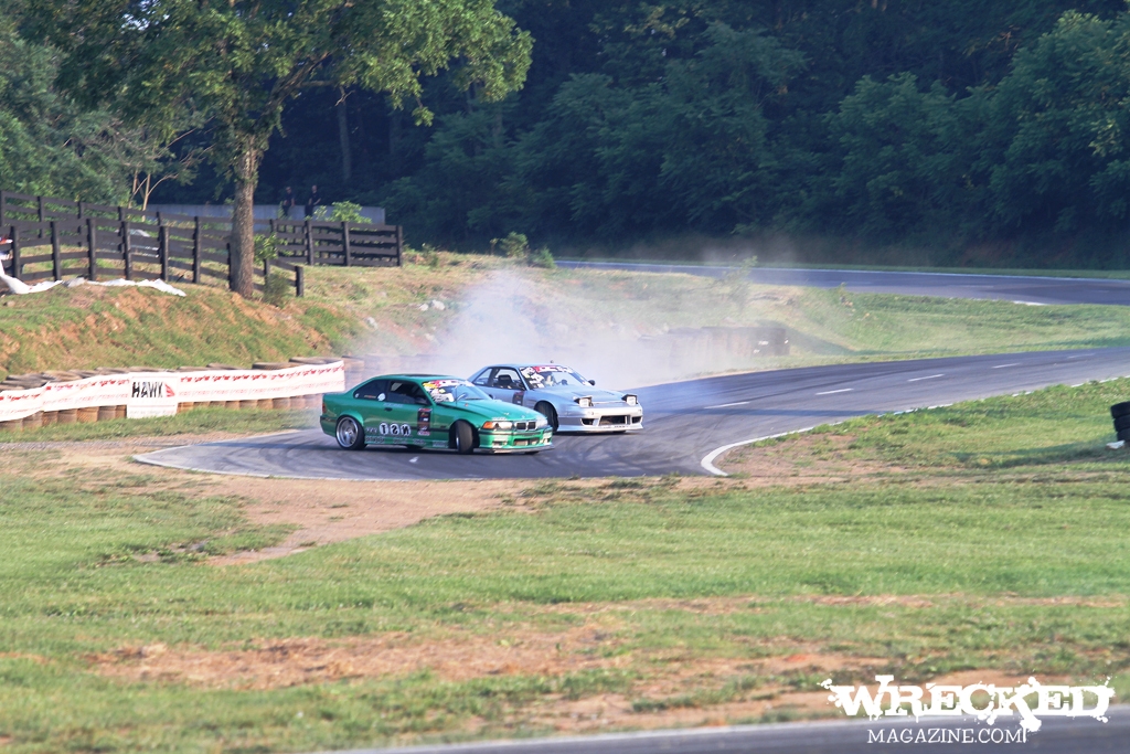 7:45am Friday, iPhone alarm going off, we get ourselves ready for a long day full of gnarlyness. We took our 1/8 of a mile ride to the main road course to find out we had a drivers meeting and had to be on track within 40 minutes … the cars were still loaded. Mike and Aubre quickly unloaded tires and supplies while Stew, Will, and I went to the drivers meeting. After the usual do’s and don’ts, we unloaded our cars, topped off fluids, and I ran out onto the track. Since I’d only road raced on this track before, I was unsure of the proper drift line. I made a few fast passes and started stepping up my entry and angle throughout the track. Our quick 40min session was over, so I headed back to the NST pits to evaluate my car and runs.