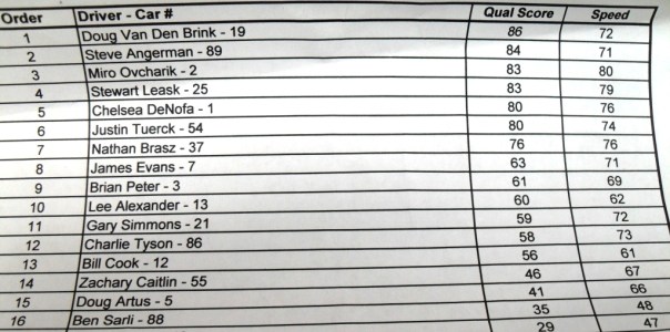 Qualifying came quickly and I sat on the bleachers to watch the first two groups. This would be my only chance to take mental notes on the drivers as I awaited my turn to drive. My first two qualifying runs were washes due to dirt all over the first part of the track, but the judges and officials swept the first turn and allowed myself and another driver an additional qualifying run. On my last run I had to assure a top 16 qualifying spot, so I needed a safe, simple, effective run which meant slowing the entry and using caution as I navigated around the five turn track.