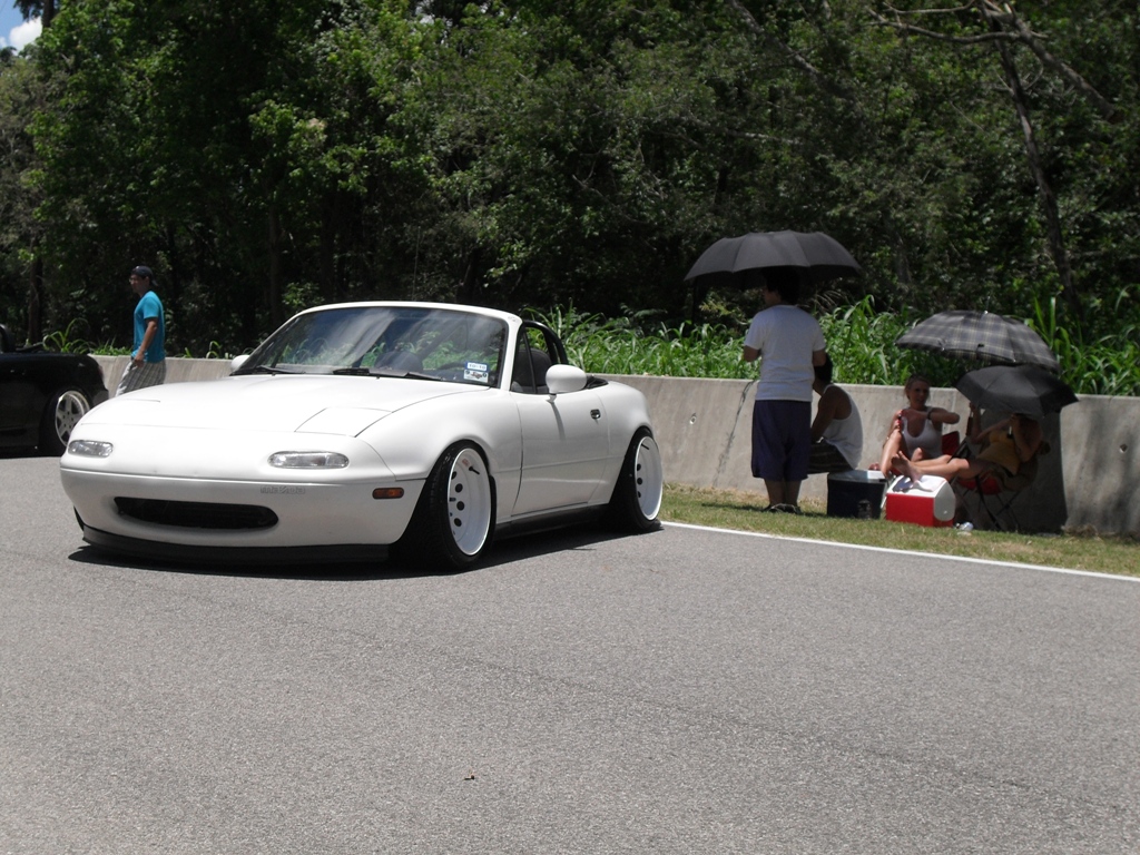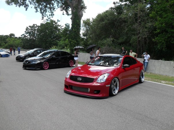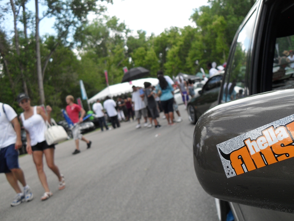 There was a great deal of Nissans on our side of the track area. In fact, I believe in total, Toyotas and Subs were out-numbered by Nissans and Europeans put together. Still, the amount of near perfect fitment setups that filled the place was enough to re-define everyone in attendance’s expectations regarding the “art”. From what I observed, most of the cars were able to navigate from the highway, through the gate and down onto the track without assistance and/or taking on damage to well groomed exteriors. But, there were several that weren’t quite pragmatic in their execution. At times taking things at a crawl and even at overly cautious speeds that would give any badge toting cross-walk guard worth his metal a good enough excuse to assign them detention for going too slow, for even a school zone. Mercifully I’ll say for those in the latter group: it looks good but it shouldn’t be moved.